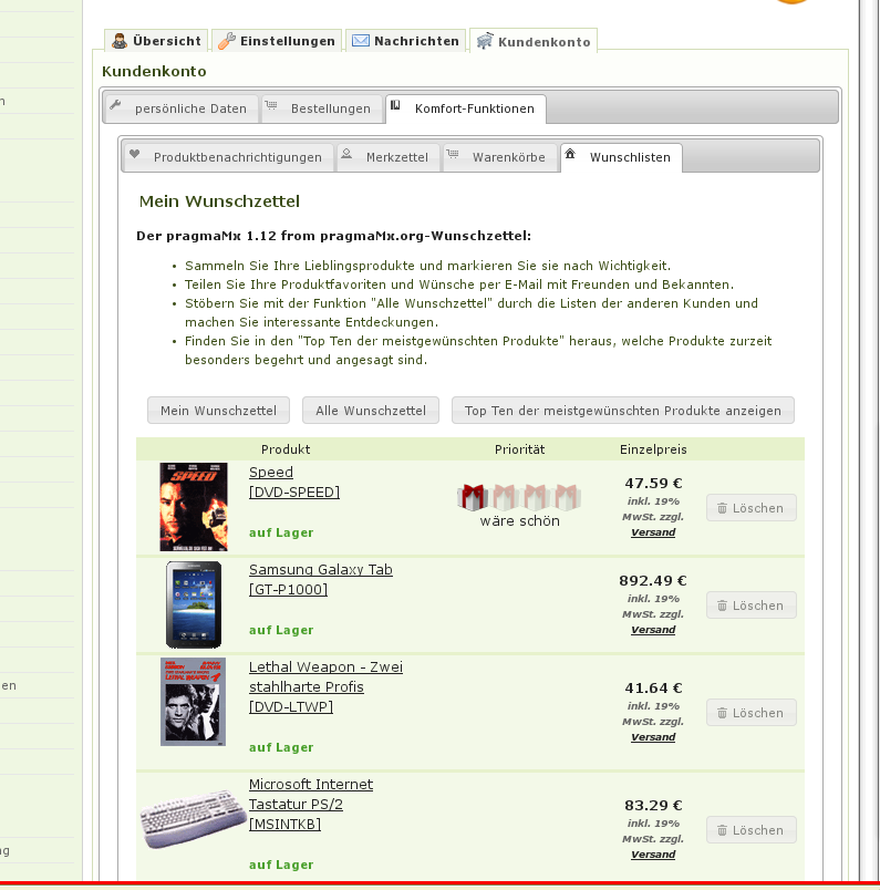 Im Wunschzettel wird eine Funktion, die Identisch ist mit der tep_draw_button des osCommerce ist, beim Laden der Verlinkten Seiten ignoriert (siehe Anhänge Löschen Buttons):