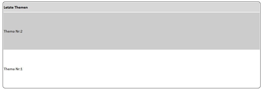 - echo "<tr height='40' bgcolor='#D8D8D8'><td><b>Letzte Themen</b></td></tr>";