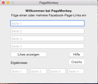 Auf Knopfdruck soll das Programm dann die Likes der eingegebenen Seite auslesen.