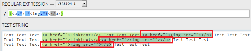 Text Text Text <a href="">Linktext</a> Text Text Text <a href=""><img src=""></a> Test Test Test
