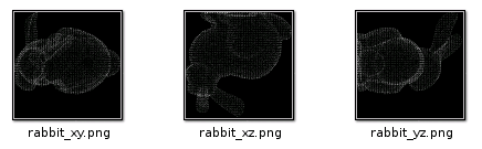 Da Bilder nur zweidimensional sind, müssen wir uns auf zwei der drei Zahlen beschränken. Es gibt drei Möglichkeiten: x und y, x und z oder y und z. Schreiben Sie eine Funktion die eine Bilddatei bild_xy.png aus den Punkten in punkte erzeugt und speichert.