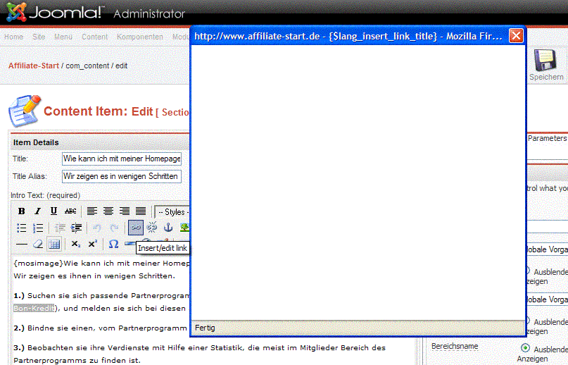 Joomla! Admin Problem mit Popups