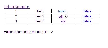 Bei klick auf "edit" in Spalte3 wird also unterhalt der Tabelle ein Test-Satz ausgeben. Funktioniert auch alles soweit. Hab das mal als Screenshot angehängt: