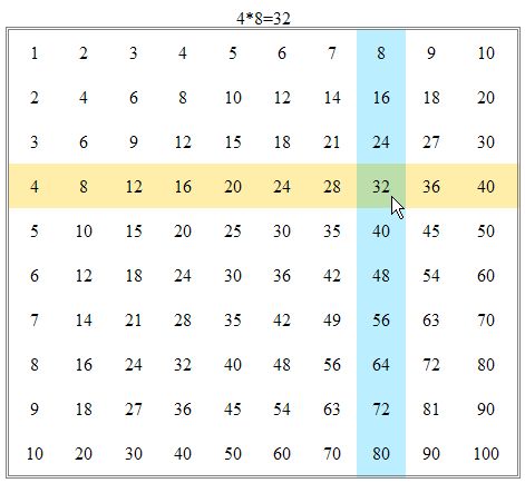 66. 'onmouseout="unmark()">'+i*j+'</td>');
