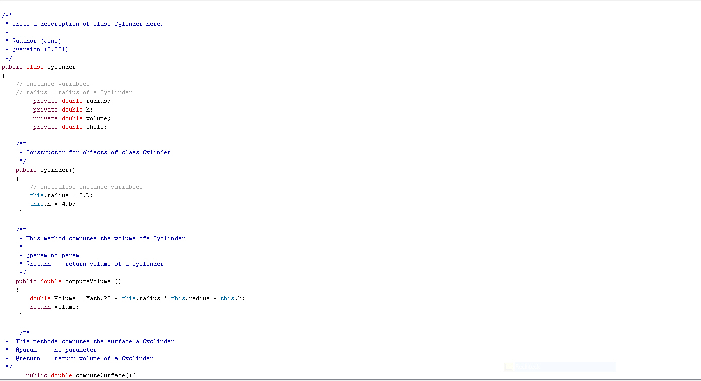 2. * Write a description of class Cylinder here.