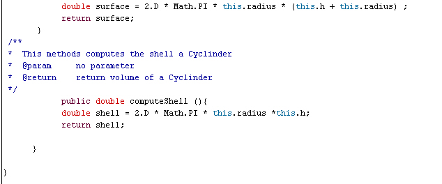 45. * This methods computes the shell a Cyclinder