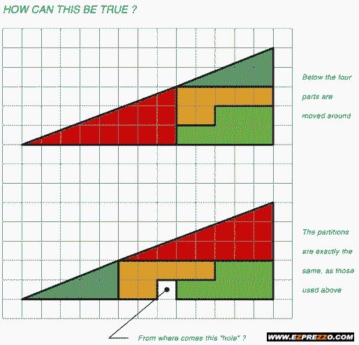 wenn man sich mal ein paar punkte der hypotenuse anschaut und vergleicht, dann sieht man, dass die dreiecke nicht die gleiche form haben..