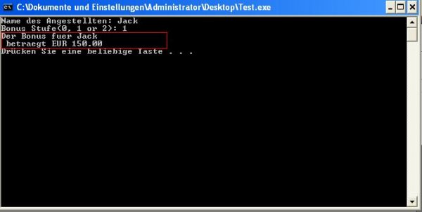 - printf("Der Bonus fuer %s betraegt EUR %.2f\n", name, b);