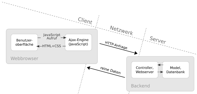 Der Client schickt HTTP-Anfragen an den Server, ohne dass die eigentliche Seite neu geladen wird, oder der Benutzer währenddessen warten muss.