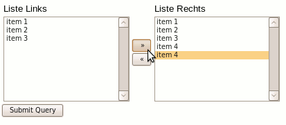 - <title>JavaScript: Auswahloptionen zwischen Listen verschieben</title>