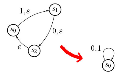 Falls ε-Zyklen existieren, fasse alle Zustände eines Zyklus zu einem zusammen und übernehme alle von ε verschiedenen Eingabezeichen des Zyklus in einer Schleife