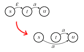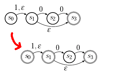 Mache jeden Zustand s, von dem aus eine ε-Übergangssequenz in einen Endzustand führt, selbst zu einem Endzustand.